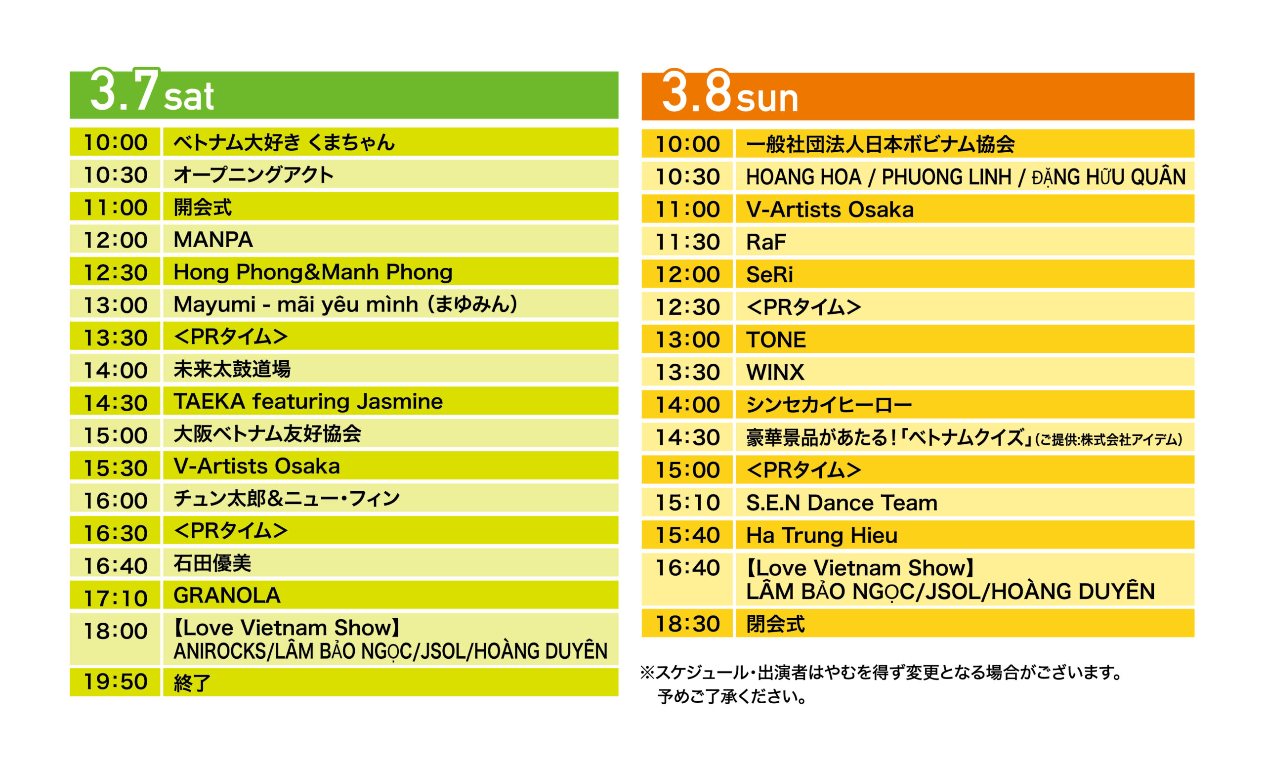 出店、協賛、出演者、事務局スタッフ、